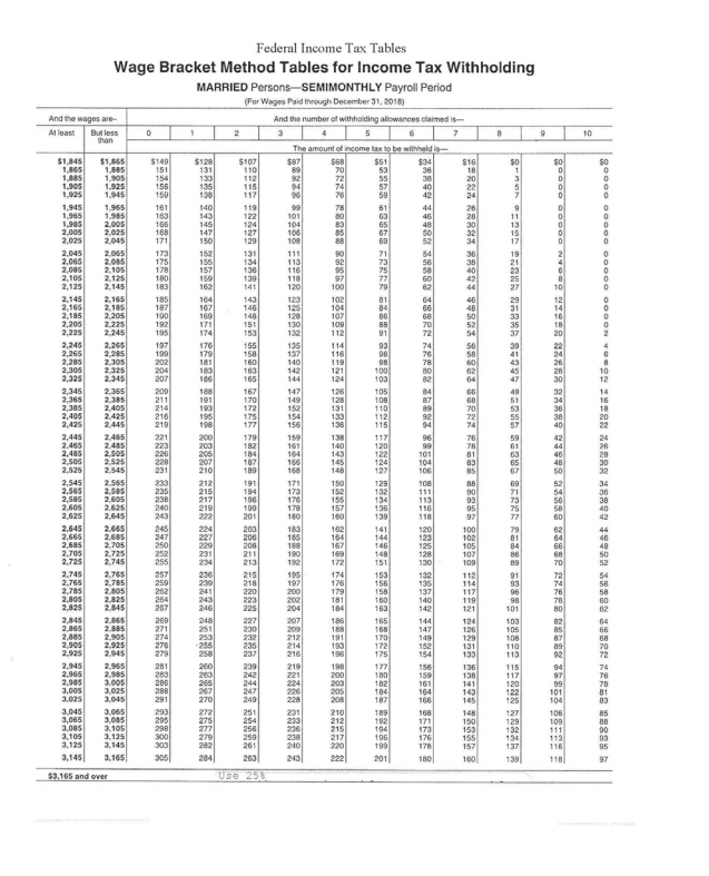 10 Federal Income Tax Tables Wage Bracket Method Chegg Com